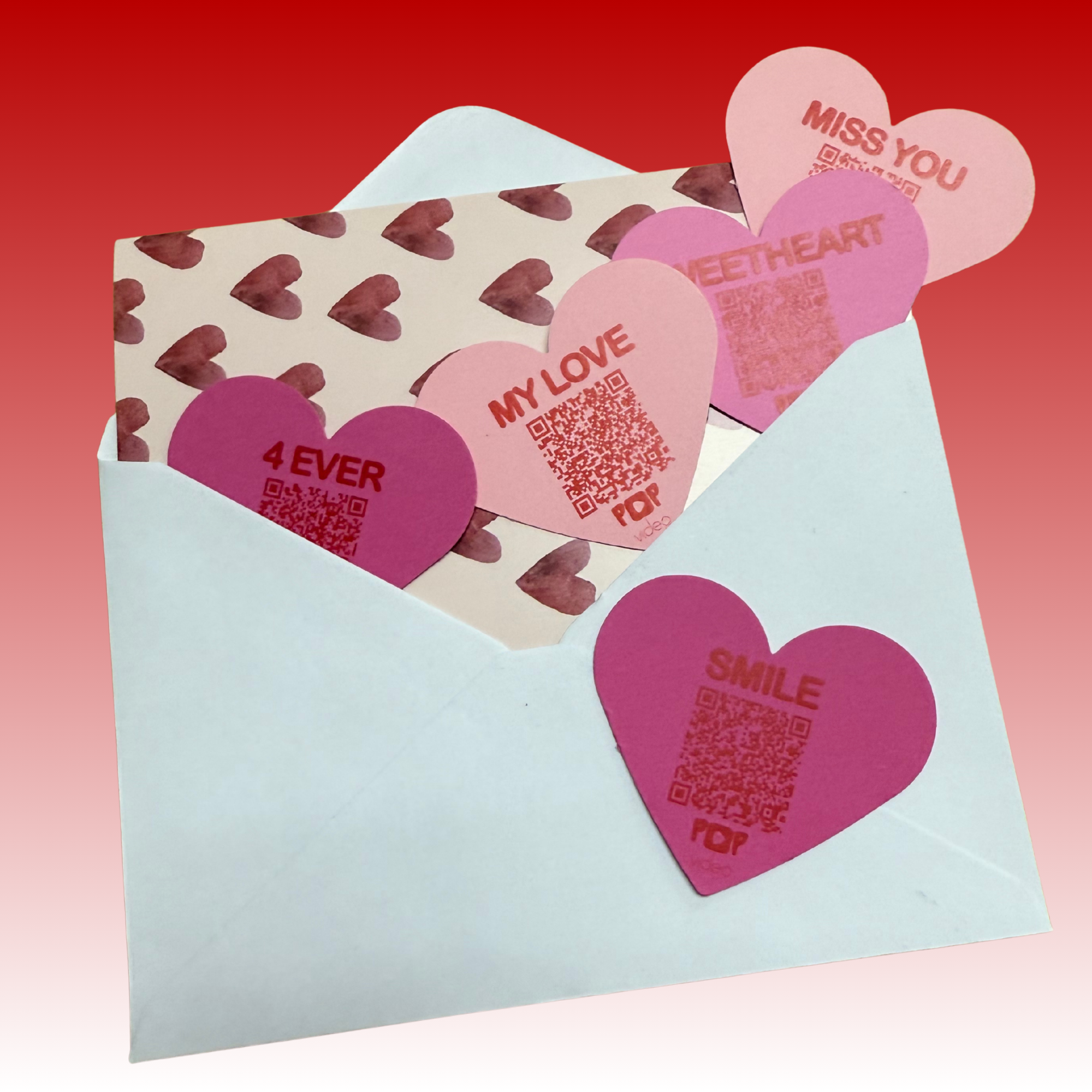 Share your love with 9 video message hearts featuring romantic printed messages.